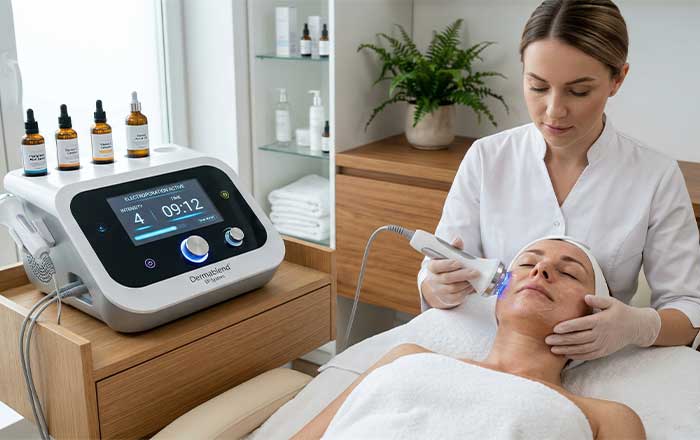 Spesso definita come "siringa virtuale", l'elettroporazione è una tecnologia non invasiva che utilizza impulsi elettrici controllati per aprire temporaneamente i canali cellulari della pelle. Questo permette ai principi attivi — come acido ialuronico, vitamine e antiossidanti — di penetrare in profondità, dove sono realmente efficaci, anziché fermarsi in superficie.